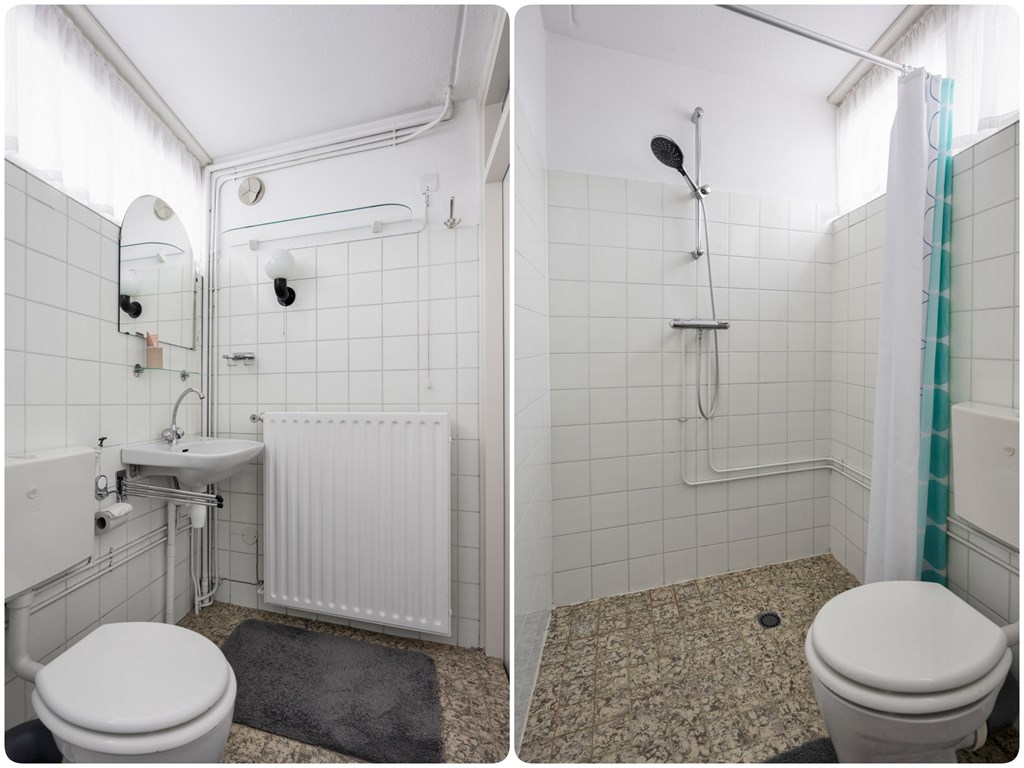 Op de 1e verdieping bevindt zich de overloop welke toegang geeft tot de 3 slaapkamers en de badkamer met douche, 2e toilet en wastafel.