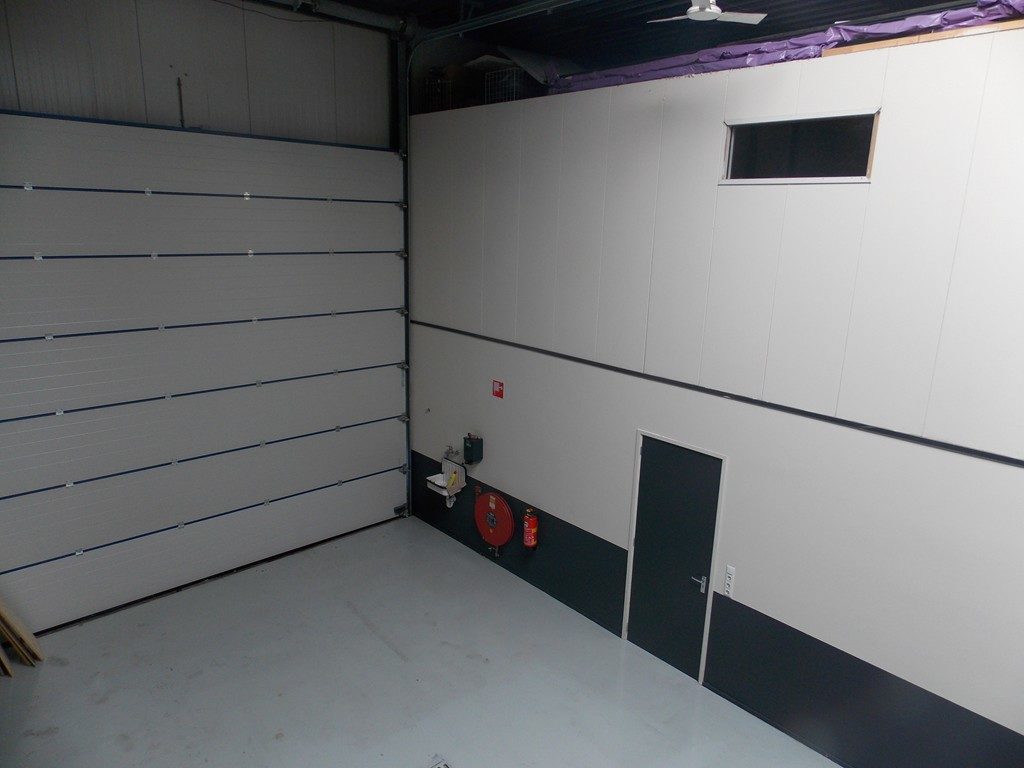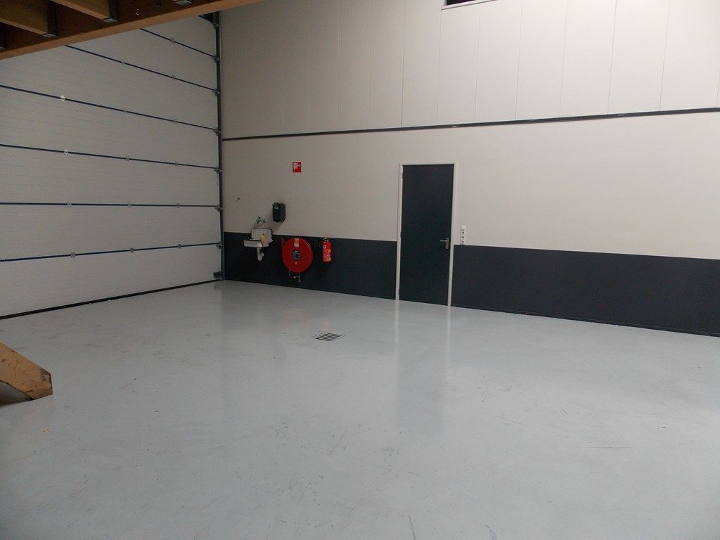 De bedrijfsloods is goed geïsoleerd en voorzien van een vloeistofdichte betonvloer met vloerverwarming.