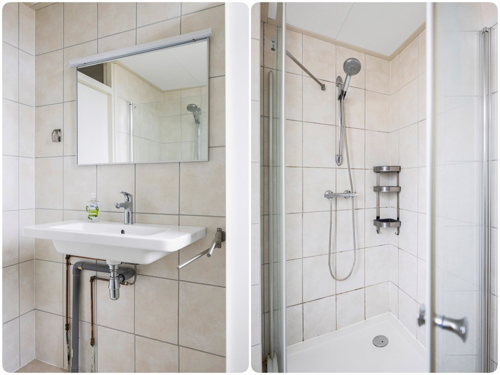 De overloop geeft toegang tot de 3 slaapkamers en de badkamer met douche, wastafel en 2e toilet. De vaste trapopgang brengt ons naar de 2e verdieping.