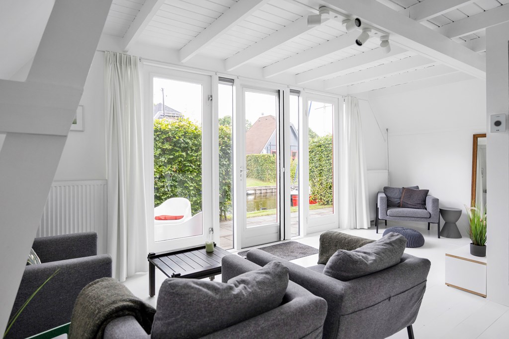 De woonkamer is heerlijk licht door de grote ramen en deuren, de keuken is open en er is een rechte keukenopstelling, de badkamer bevindt zich ook op de begane grond en op de verdieping zijn 2 slaapkamers. Het terras is gelegen op het zuidwesten aan het water en biedt voldoende privacy door de groene heg, een groot zonnescherm zorgt voor de nodige schaduw binnen en buiten de woning. Op de verdieping is ook een zonnescherm welke op zonne-energie werkt. Ook zijn er overal op maat gemaakte horren aanwezig. Naast de woning is nog een aangebouwde houten berging, ook deze is nieuw en heel handig voor fietsen, tuinmeubilair, kano etc. Een knusse woning voorzien van alle comfort wat je zoekt als je op vakantie gaat.