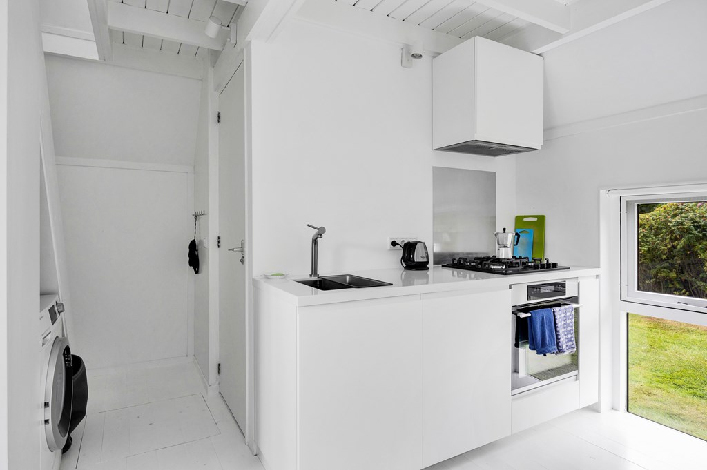 Het park is alleen te betreden via een slagboom met een eigen elektronische sleutel, gasten parkeren buiten de poort. Zodra je het park oprijdt ervaar je al het vakantiegevoel, dit voelt als een 2e thuis, en dat wil je graag toch. Als eigenaar parkeer je je auto op je eigen parkeerplek vlakbij de woning. Na een korte wandeling naar de woning betreden we deze via de toegangsdeur bij het terras aan de waterkant, we komen direct in de knusse woonkamer met balkenplafond. De open keuken heeft een rechte keukenopstelling welke is voorzien van koelkast, gaskookplaat, afzuigkap en oven. De meubels op de begane grond blijven grotendeels staan.