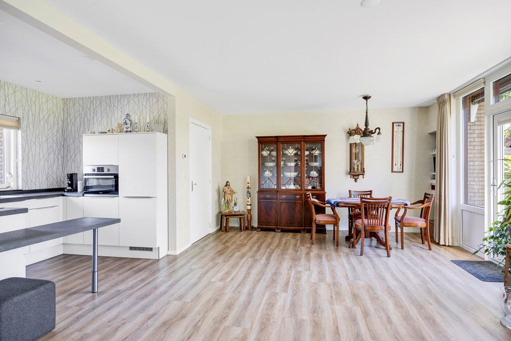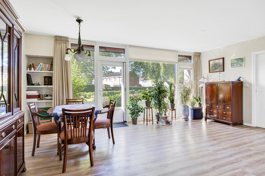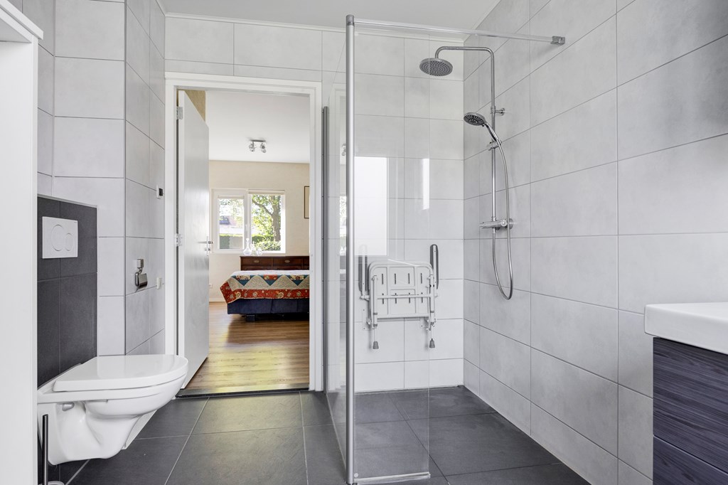 Nadat we de auto geparkeerd hebben op het terrein van zorgcentrum Talma Hiem betreden we de woning via de voordeur en komen in de hal met meterkast en toilet, lopen we door dan komen we in de ruime woonkamer met grote raampartij en openslaande deur naar de zonnige tuin op het zuiden. Het grote zonnescherm zorgt voor de nodige schaduw in de zomer. Er is een open keuken met nieuwe U-vormige keukenopstelling welke is voorzien van inbouwapparatuur zoals; koelkast, vrieskast, combimagnetron, inductie kookplaat en vaatwasser. Via de woonkamer komen we in de bijkeuken die door de uitbouw ruim is, hier bevindt zich een klein keukenblokje en de trapopgang naar de verdieping, de bijkeuken is tevens toegankelijk via de achterdeur. Tevens genoeg ruimte voor een scootmobiel of fiets. Op de begane grond bevindt zich de slaapkamer welke toegankelijk is via de woonkamer, aansluitend aan de slaapkamer is de nieuwe badkamer met inloopdouche, 2e toilet, wastafel met meubel en de aansluiting voor de wasmachine en droger. Ook de badkamer heeft vloerverwarming.