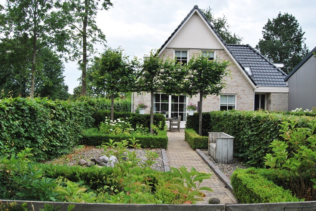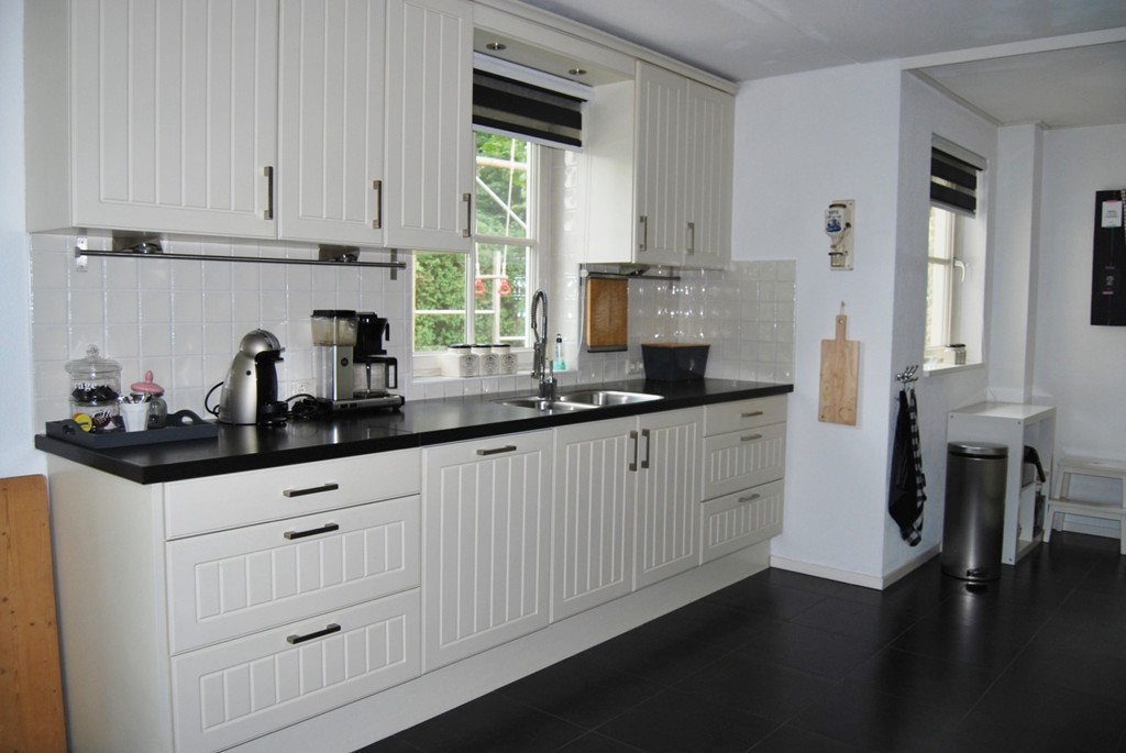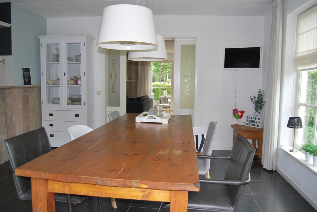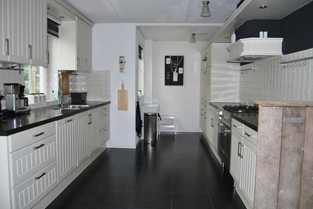 Begane grond: Entree, ruime hal, toegang naar loods, meterkast, toilet, trapopgang, trap naar kelder, ruime bijkeuken met inbouwkast en keukenblok, aansluiting voor wasmachine en droger, badkamer met ruime inloopdouche en dubbele wastafel, slaapkamer/werkkamer met schuifpui naar tuin en terras. Ruime woonkamer met schuifpui naar fraai aangelegde voortuin, en suitedeuren naar woonkeuken met schuifpui naar fraai aangelegde achtertuin, ruime moderne keuken met composiet aanrechtblad en diverse inbouwapparatuur zoals; koelkast, vrieskast, combimagnetron, fornuis met oven, afzuigkap en vaatwasser.