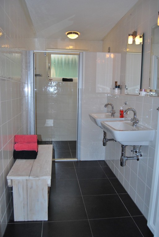 Overloop, 4 mooie lichte slaapkamers met diverse inbouwkasten, 1 slaapkamer heeft toegang tot het dakterras, riante tweede badkamer met inloopdouche, hangtoilet, bad en dubbele wastafel.