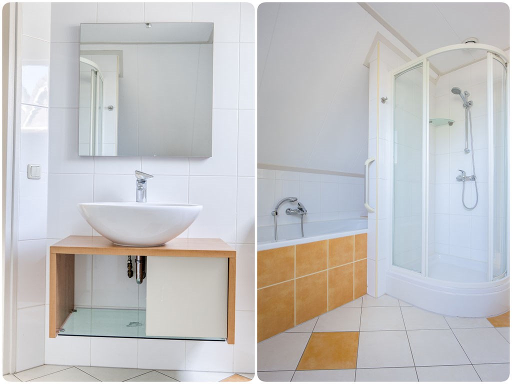 De overloop geeft toegang tot 3 slaapkamers en een 2e badkamer met ligbad, douchecabine, wastafel met meubel en toilet.