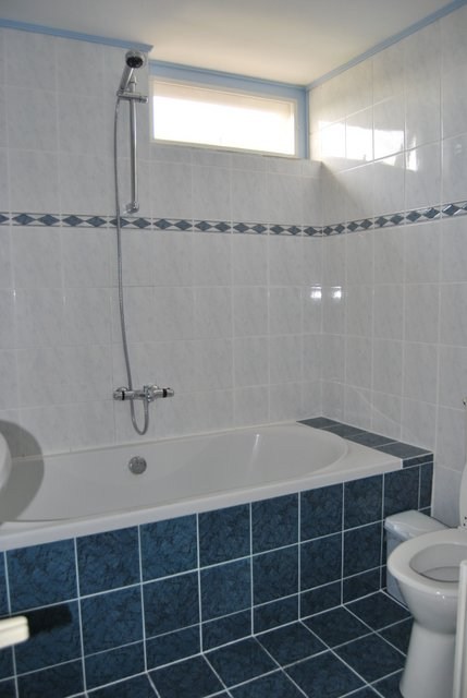 Overloop, drie slaapkamers, badkamer met bad, tweede toilet en wastafel, vaste trap naar tweede verdieping.
