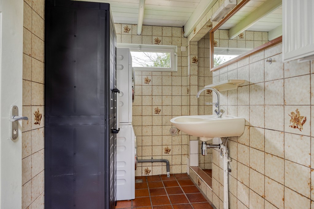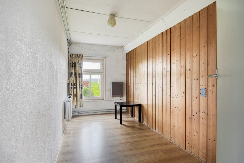 We parkeren onze auto op het eigen parkeerterrein aan de voorzijde, blijf eerst even staan en kijk om u heen, geniet van het prachtige uitzicht over de landerijen. We wandelen om ons heen kijkend naar de woning en betreden deze via de voordeur en komen in de hal, welke toegang geeft tot het toilet, de badkamer, 3 slaapkamers en de woonkamer met open keuken. De moderne keuken is geplaatst in 2018 en voorzien van diverse inbouwapparatuur zoals; koelkast, keramische kookplaat, afzuigkap, quooker en vaatwasser. Achter de keuken bevindt zich nog een slaapkamer. Via de keuken/woonkamer is de berging toegankelijk welke weer toegang geeft tot de tuin. De begane grond is deels voorzien van het originele balkenplafond en er is centrale verwarming.