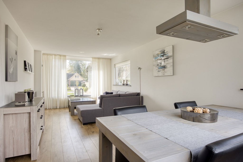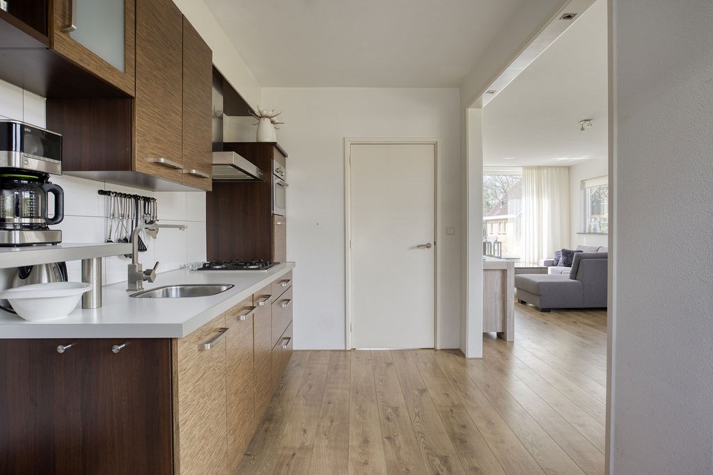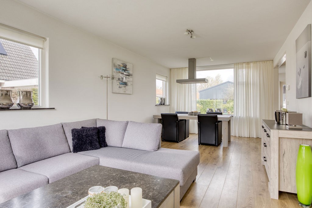 Zodra we de auto op de ruime oprit hebben geparkeerd betreden we de woning via de hal, hier bevindt zich het toilet, meterkast, trapopgang en kelder. Aan het einde van de hal is er toegang tot de woonkamer met veel lichtinval door de vele ramen en de open keuken met rechte keukenopstelling met diverse inbouwapparatuur zoals; koelkast, combimagnetron, gaskookplaat en afzuigkap, tevens een bargedeelte. Via de keuken is de ruime achtertuin bereikbaar, hier staat een vrijstaande stenen berging en er zijn meerdere terrassen voor zowel zon of schaduw, de achtertuin is gelegen op het noorden en biedt voldoende privacy.