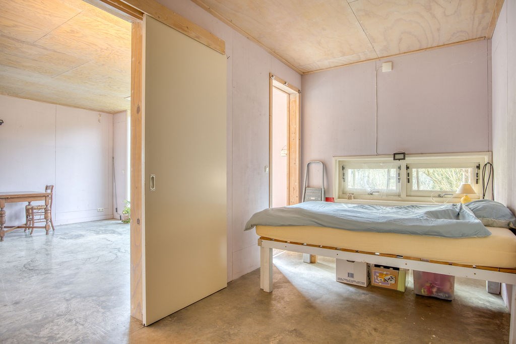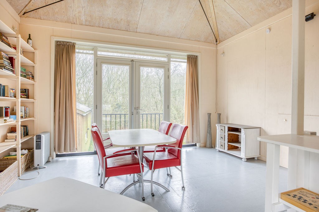 1 grote open ruimte met openslaande deuren en Frans balkon, welke als slaapkamer, kantoor, atelier, praktijkruimte enz. kan dienen. Eventueel op te delen in meerdere ruimtes om bijv. meer slaapkamers te realiseren. Vanaf de verdieping hebt u ook weer prachtig uitzicht over de tuin en de omliggende bossen.