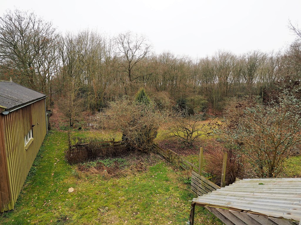 Op prachtig landelijk gelegen locatie, aan doodlopende weg, met vrij uitzicht over de weilanden en de omliggende bossen, maar toch nog dichtbij het dorp, staat dit unieke pand, dat klinkt toch als muziek in de oren? Maar er is nog meer… Deze vrijstaande woning, welke in 1981 opnieuw opgebouwd is, heeft een moderne houten aanbouw, gebouwd in 2007, welke de mogelijkheid biedt voor een B&B of dubbele bewoning. De aanbouw heeft een eigen entree maar is ook via de woning bereikbaar. De aanbouw leent zich overigens ook uitstekend voor een praktijk of atelier. De woning staat op een ruim perceel van 1.230 m², met aansluitend een perceel land voor het houden van paarden of kleinvee van 5.535 m², totale perceelgrootte is 6.765 m². In de tuin staat tevens nog een vrijstaande houten schuur van ca. 8×4.75 m. Het woonhuis beschikt over een slaapkamer en badkamer op de begane grond, op de verdieping bevinden zich nog 3 slaapkamers. De aanbouw heeft een moderne badkamer met whirlpool bad, een slaapkamer op de begane grond en een grote open ruimte/slaapkamer op de verdieping. Vanuit elke ruimte in de gehele woning heeft u prachtig landelijk uitzicht, waar u ook staat, dat is Genieten met een hoofdletter G. Vanuit de achtertuin is een laantje tussen de bomen door naar het achterliggende perceel, omringd door de bomen waar de knoppen alweer in komen komt u helemaal tot rust, u hoort enkel de vogels zingen en de wind waaien door de takken. Als u na het lezen van de omschrijving en indeling, het bekijken van de foto’s en de prachtige dronevideo nieuwsgierig bent geworden, dan nodigen wij u graag uit om dit unieke pand op werkelijk prachtige locatie zelf te komen bekijken en de omgeving in u op te laten nemen.