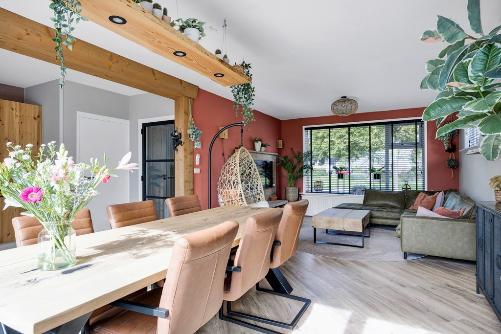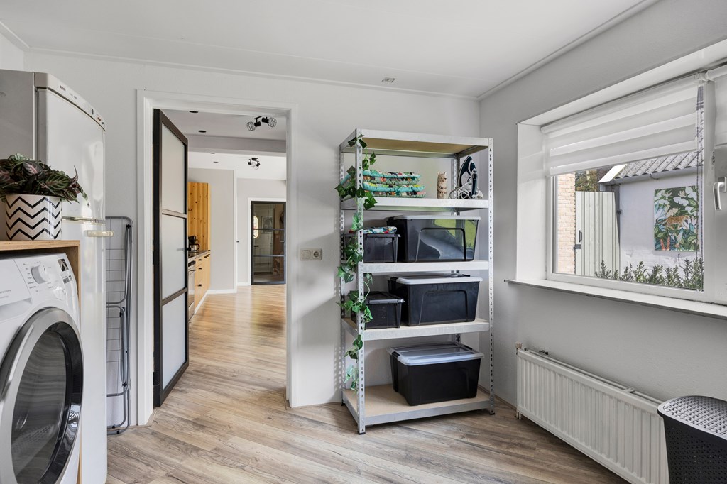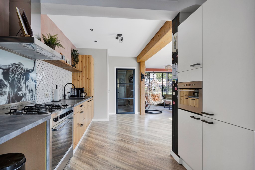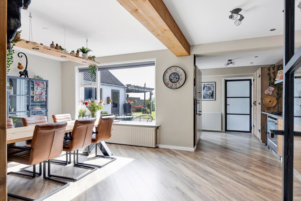We hebben onze auto geparkeerd op de ruime oprit en betreden de woning via de voordeur, we komen in de hal met meterkast, toilet en trapopgang, via de hal komen we in de riante keuken met rechte keukenopstelling welke is voorzien van diverse inbouwapparatuur zoals; koelkast, vrieskast, combimagnetron, RVS fornuis met oven en 5 gaspitten, afzuigkap en vaatwasser, de keuken is open richting de woonkamer, deze is ruim en sfeervol. Al zittend aan de eetkamertafel kun je genieten van het uitzicht op de achtertuin met daarachter het altijd mooie landelijke uitzicht over de landerijen. Achter de keuken bevindt zich de bijkeuken met aansluiting voor de wasmachine en droger, tevens is er toegang tot de aangebouwde berging van ca. 7,90×3,30m. In de achtertuin staat nog een stenen garage van ca. 5,75×2,80m.