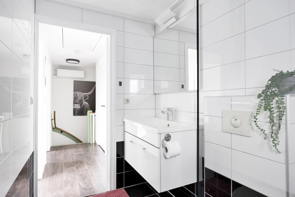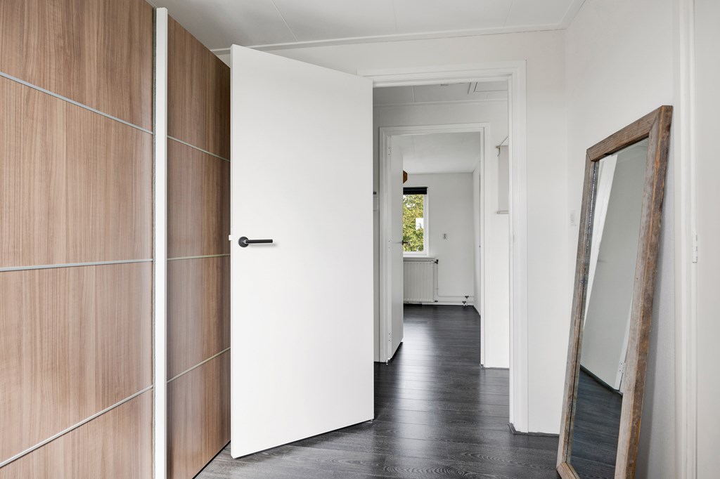 De overloop geeft toegang tot de 4 slaapkamers, elk met inbouwkasten, en de badkamer met inloopdouche, 2e toilet en wastafel met meubel. Op de overloop is via een vlizotrap de bergzolder te bereiken.