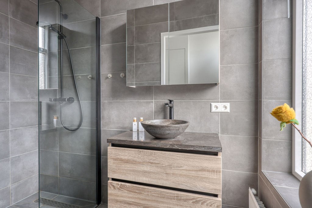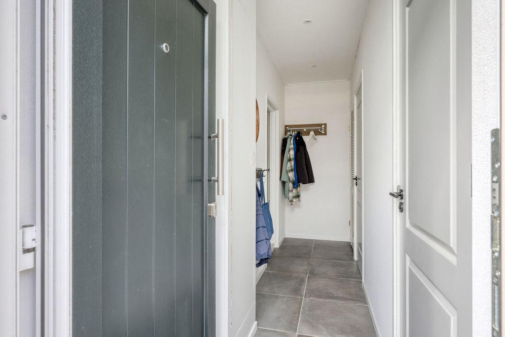 We betreden de woning aan de voorzijde en komen in de hal met rechts de badkamer met douche, wastafelmeubel en vloerverwarming, naast de badkamer bevindt zich het toilet met hangcloset, naast het toilet is de wasruimte met aansluiting voor de wasmachine. Links van de hal is de woonkamer met gezellige gashaard en uitzicht op de achtertuin, aan de voorzijde van de woning bevindt een slaapkamer, deze is toegankelijk via de woonkamer. Naast de woonkamer bevindt zich de knusse keuken met afgesloten trapopgang naar de verdieping. Via de keuken stap je de grote achtertuin in.