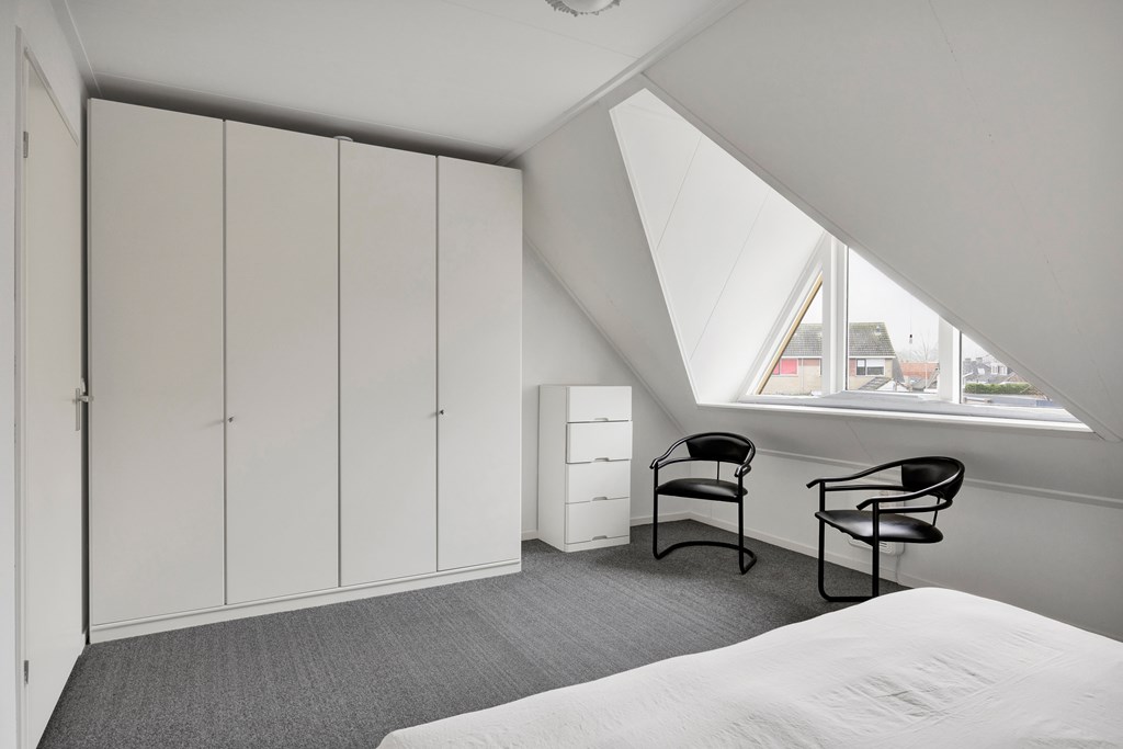De riante overloop geeft toegang tot een ruime slaapkamer en een berging, welke ook prima kan dienen als bijvoorbeeld een inloopkast. Het is evt. mogelijk op de verdieping, indien gewenst, een extra slaapkamer te realiseren.
