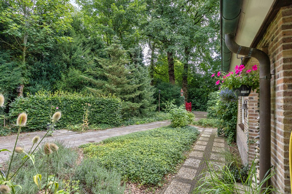 De weelderige tuin met gezellige paadjes heeft meerdere terrassen en zithoekjes voor elk moment van de dag, genieten in de zon of juist in de schaduw van de bomen, het kan hier allemaal. Aangebouwd aan de vrijstaande houten garage is een ruime schuur welke voor vele doeleinden geschikt is.