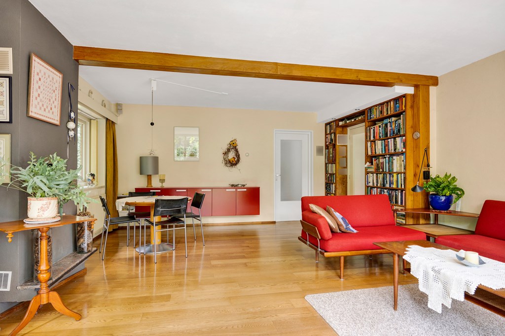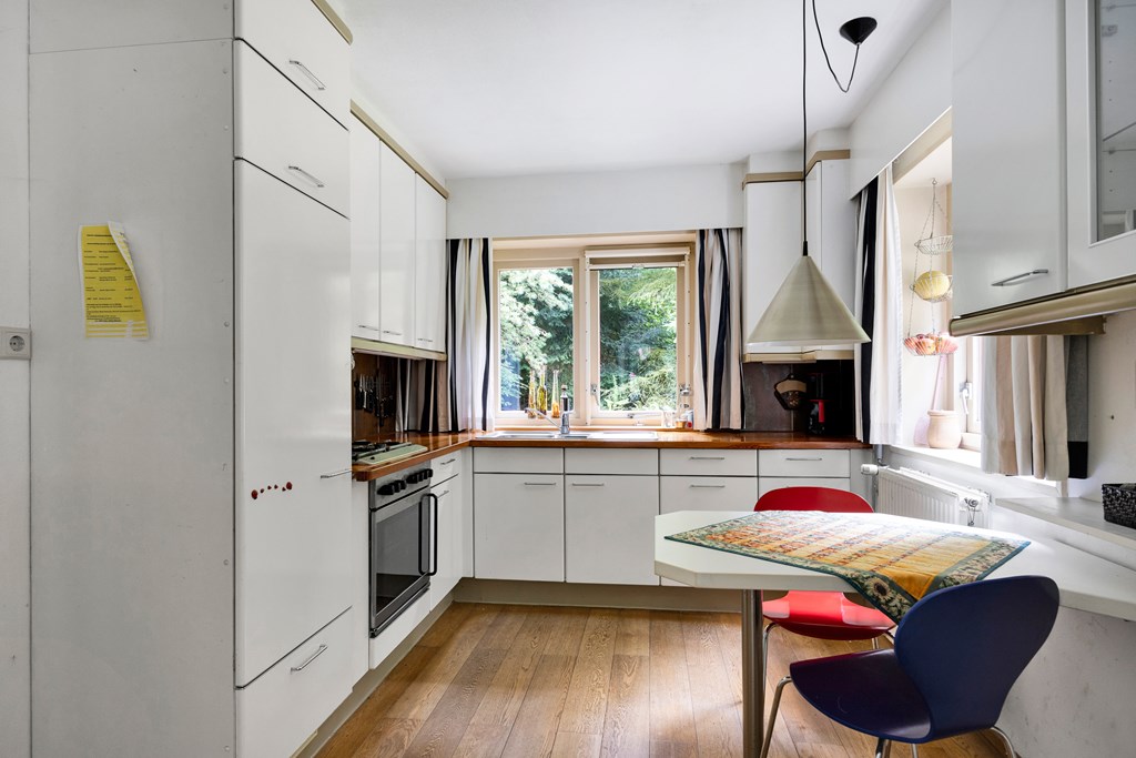 Door de vele natuurlijke lichtinval is de woonkamer een heerlijke lichte leefruimte met een houten vloer en een houtkachel. Naast de woonkamer bevindt zich de keuken met hoekopstelling, welke voorzien is van diverse inbouwapparatuur zoals; koelkast, gaskookplaat, afzuigkap en oven. Ook vanuit de keuken heb je tijdens het kokkerellen dat prachtige zicht op het omliggende groen. De bijkeuken is aansluitend aan de keuken en heeft een aansluiting voor de wasmachine en droger, tevens toegang tot de tuin.