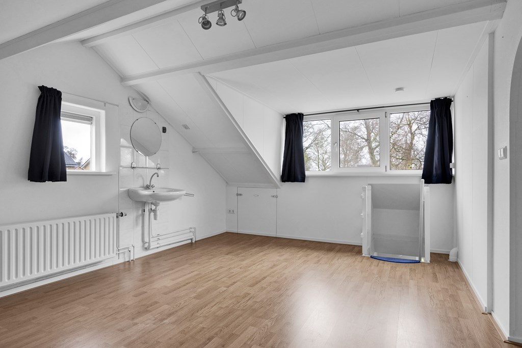 Op de verdieping is het mogelijk de huidige ruime inloopkast/berging als slaapkamer te gebruiken, waardoor er op de verdieping 2 slaapkamers zijn.