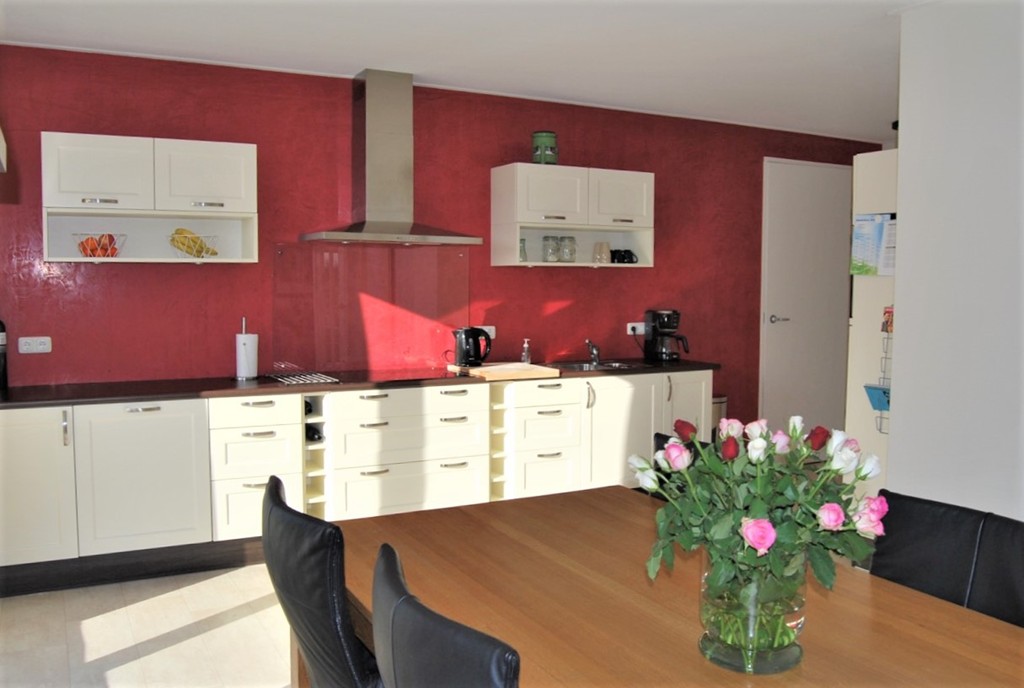 Entree, hal, meterkast, toilet, trapopgang, woonkeuken met rechte keukenopstelling en diverse inbouwapparatuur zoals; koelkast, combimagnetron, keramische kookplaat, afzuigkap en vaatwasser, schuifpui naar tuin en terras, en-suite deuren naar woonkamer, badkamer met douche, wastafel en tweede toilet, extra ruimte welke geschikt is als kantoor of slaapkamer, bijkeuken.