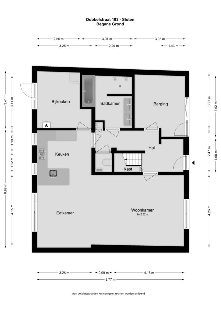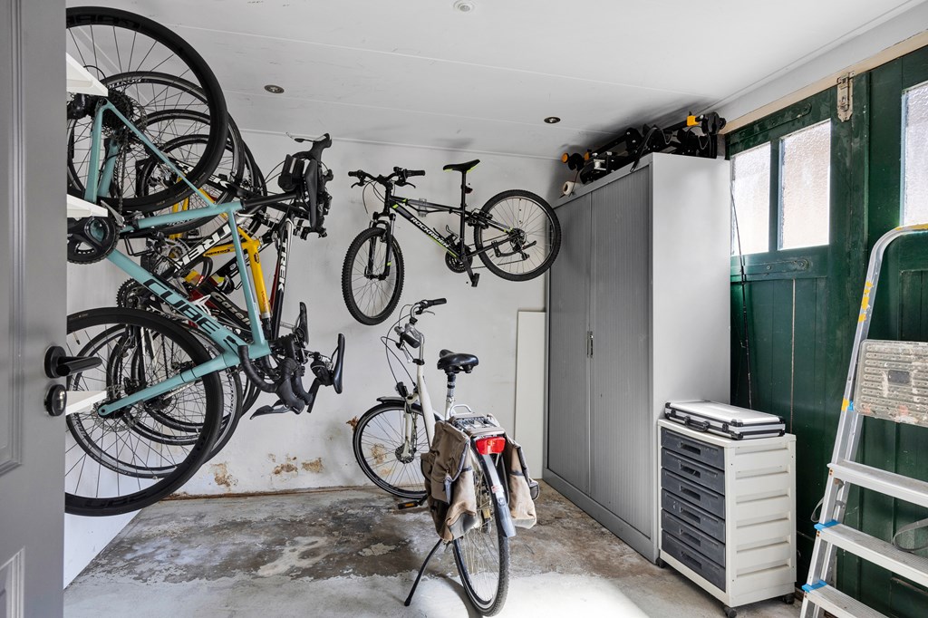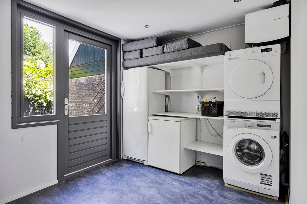 Via de keuken kom je in de ruime bijkeuken met aansluiting voor de wasmachine en droger, en cv-installatie, tevens deur naar de achtertuin.