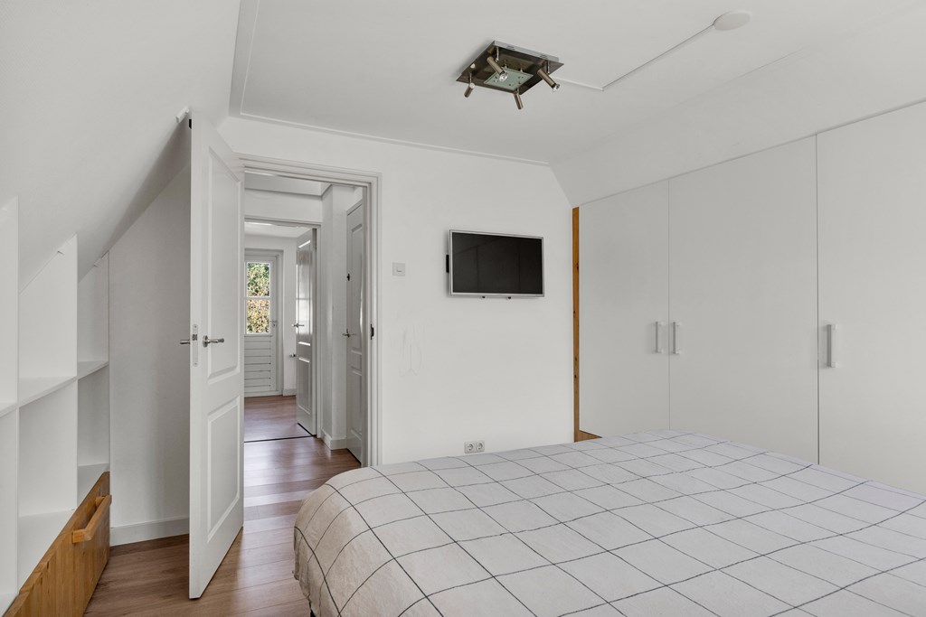 In de aanbouw op de begane grond is naast de bijkeuken nog een kleine slaapkamer/kantoor, 1 van de in totaal 3 slaapkamers, de andere 2 slaapkamers bevinden zich op de verdieping, waar ook de badkamer is.