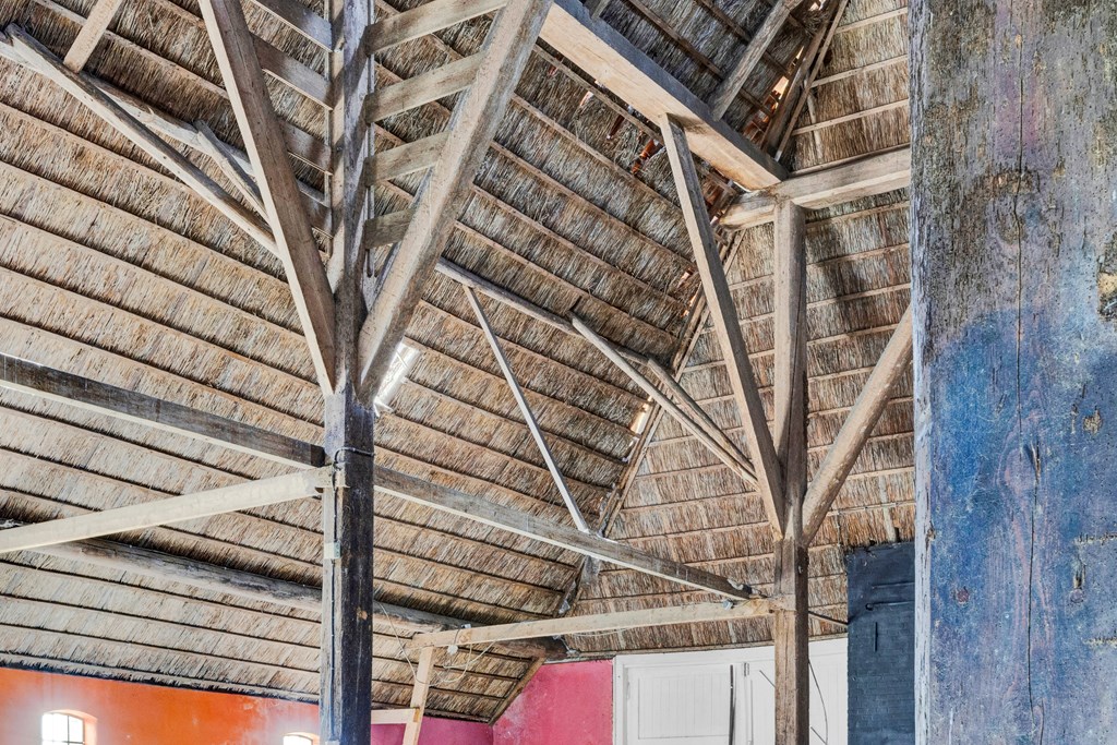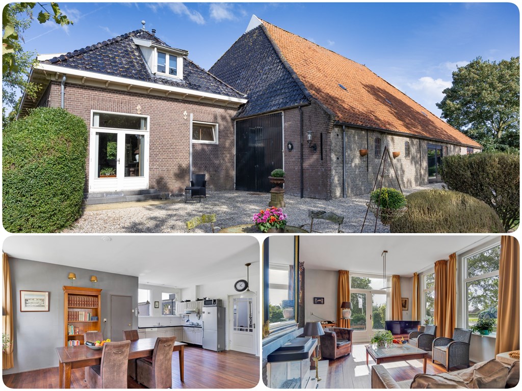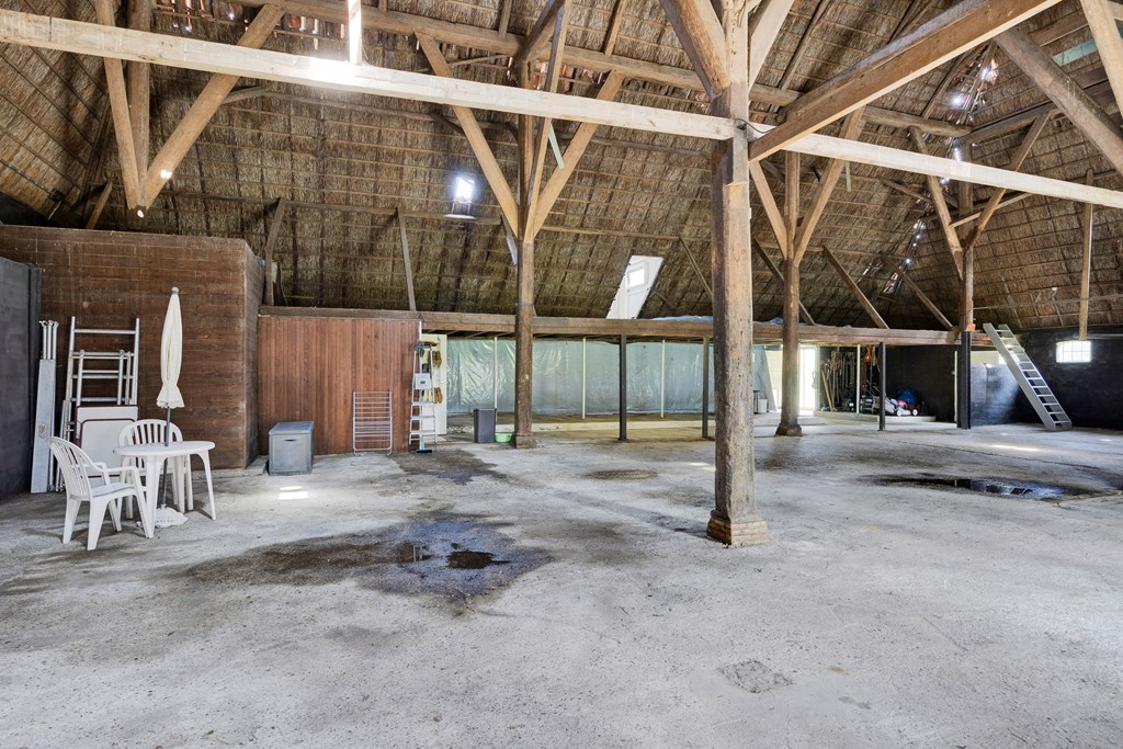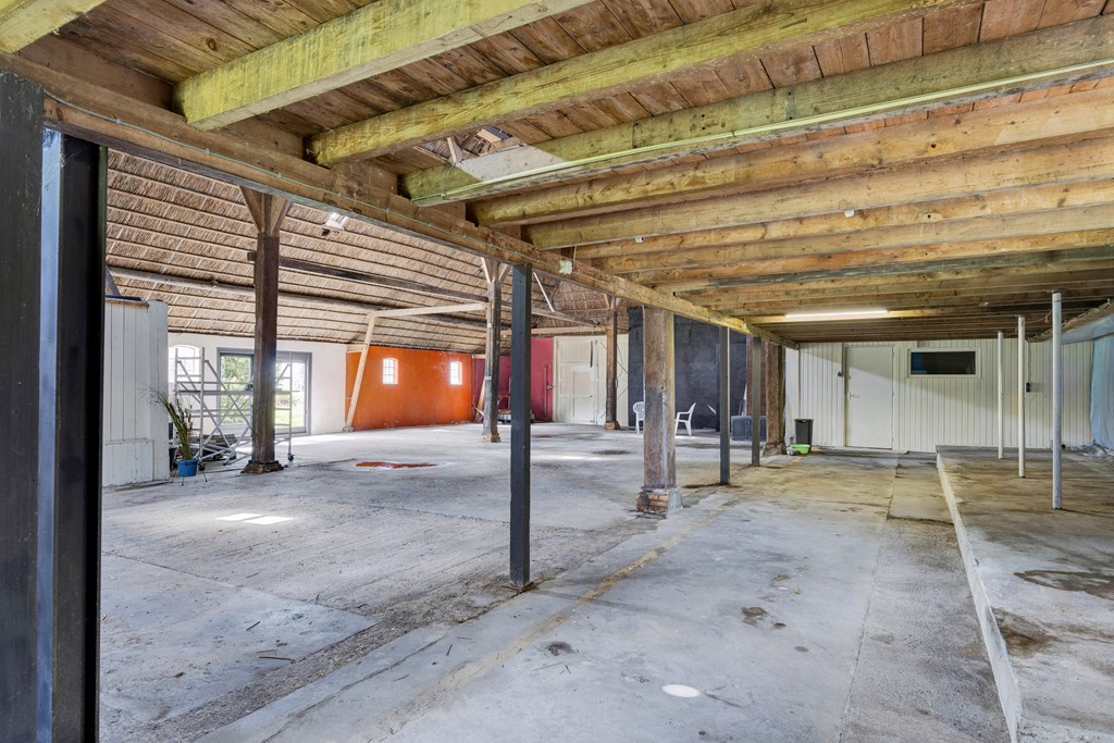 De originele dubbele men-/staldeuren aan de rechterzijde van de woonboerderij geven toegang tot de deel met het originele zogenaamde vierkant (geraamte/gebint), hier is voldoende ruimte, maar liefst 460 m², voor het stallen van meerdere auto’s, camper of caravan maar is ook zeer geschikt voor de ondernemer/zzp’er. Ook het realiseren van een gastenverblijf/appartement/B&B/kangoeroe wonen etc. behoort tot de mogelijkheden. De aangebouwde stenen schuur is tevens voor vele doeleinden geschikt. Ook is het mogelijk de woning intern uit te breiden.