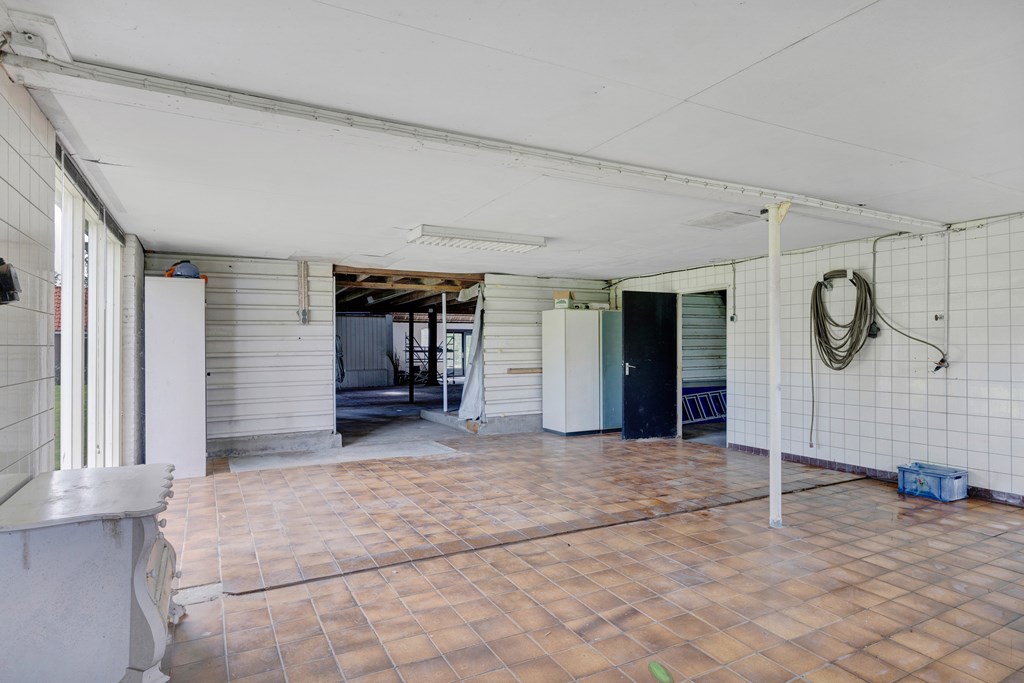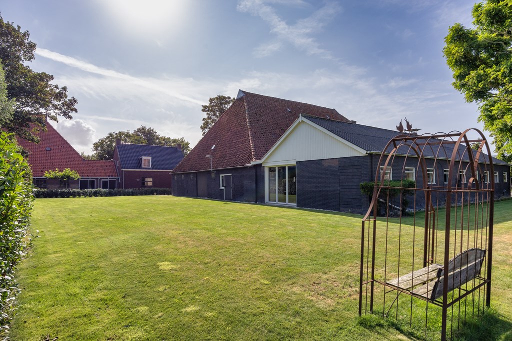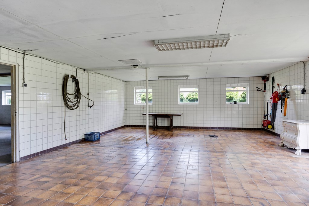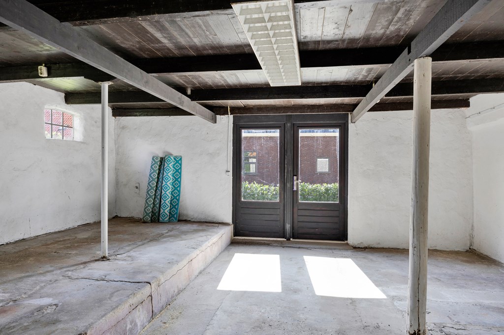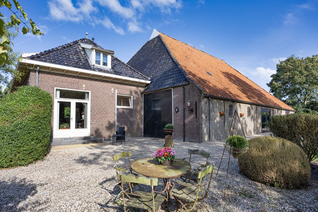 De originele dubbele men-/staldeuren aan de rechterzijde van de woonboerderij geven toegang tot de deel met het originele zogenaamde vierkant (geraamte/gebint), hier is voldoende ruimte, maar liefst 460 m², voor het stallen van meerdere auto’s, camper of caravan maar is ook zeer geschikt voor de ondernemer/zzp’er. Ook het realiseren van een gastenverblijf/appartement/B&B/kangoeroe wonen etc. behoort tot de mogelijkheden. De aangebouwde stenen schuur is tevens voor vele doeleinden geschikt. Ook is het mogelijk de woning intern uit te breiden.