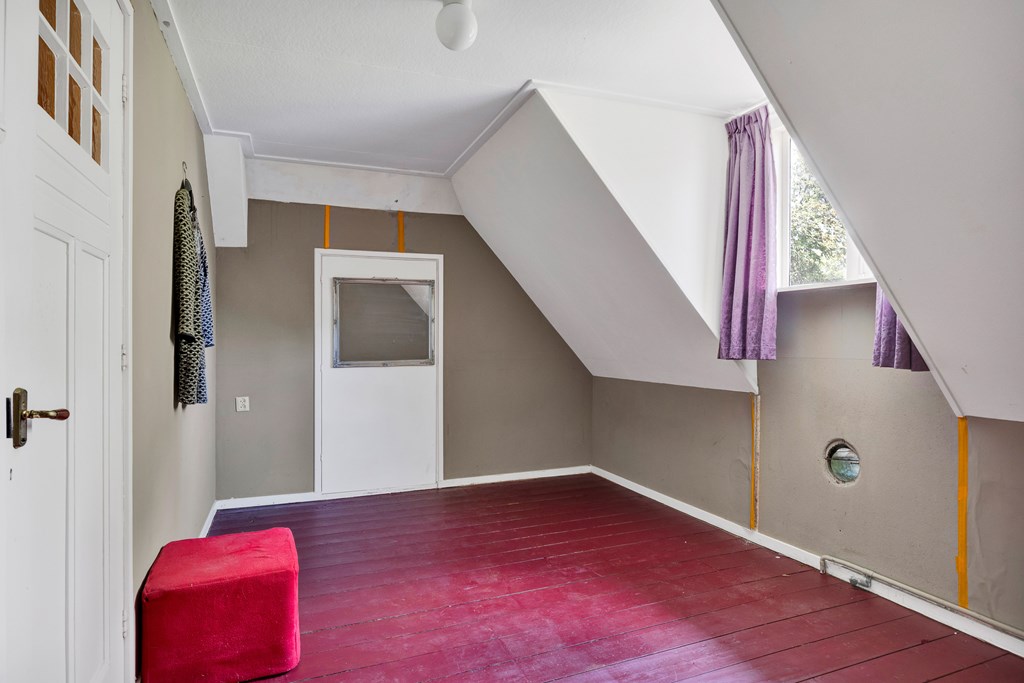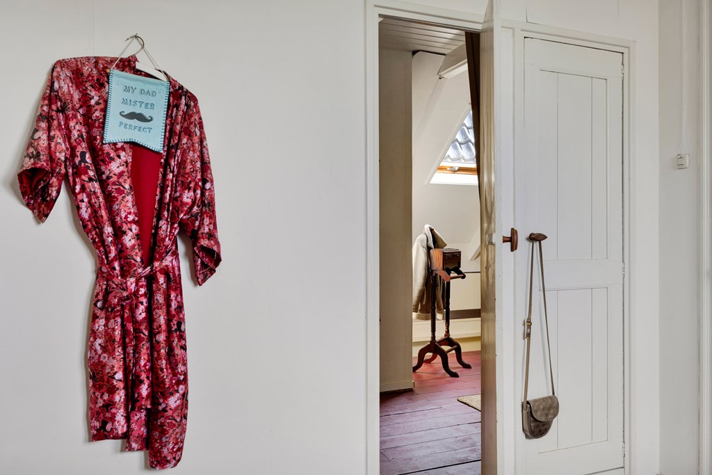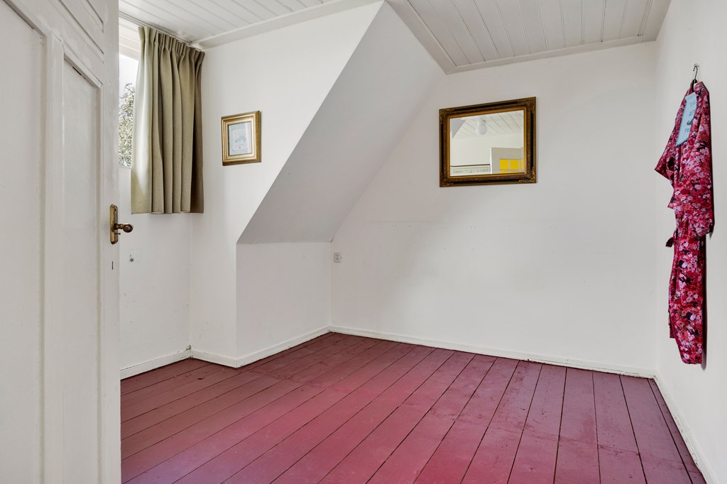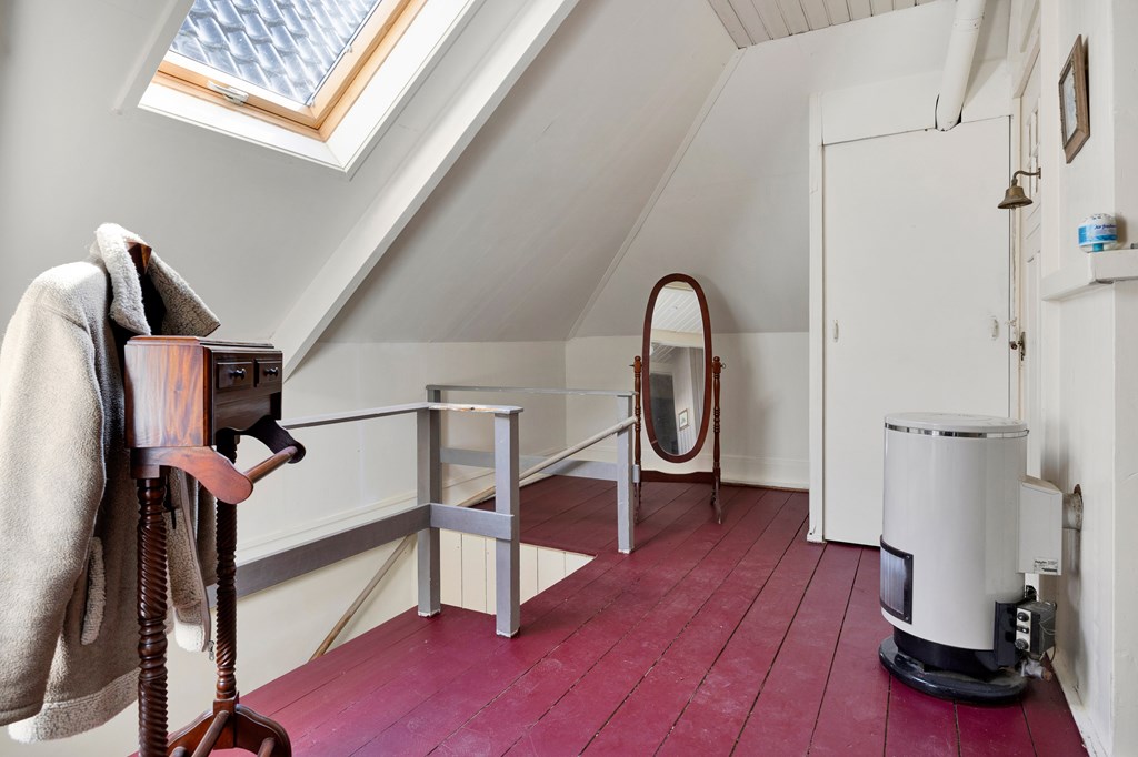 De verdieping is een plaatje op zich, de authentieke rode houten vloerdelen, de prachtige paneeldeuren en kraalschoten plafonds geven de sfeer weer die past bij het wonen in een woonboerderij. Op de verdieping bevinden zich een ruime overloop met gaskachel, ruimte voor de gasboiler, inloopkast en 4 slaapkamers, tevens is er nog voldoende bergruimte.
