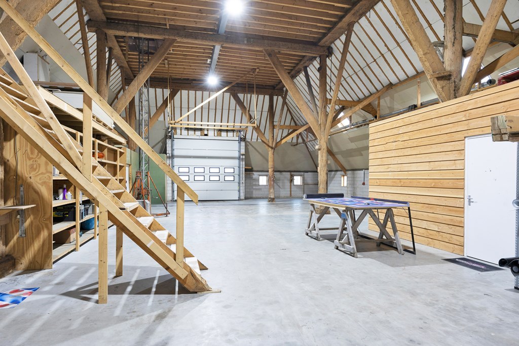 De huidige bewoners gebruiken een deel van de deel/stal als showroom, drukkerij/kantoor en werkplaats. De showroom heeft een eigen entree aan de voorzijde en is uiteraard ook voor andere doeleinden geschikt. De werkplaats met magazijn, welke gesitueerd is in het achterste gedeelte, is toegankelijk via een overheaddeur aan de achterzijde en enkele loopdeuren. De werkplaats is volledig geïsoleerd en er is vloerverwarming, wat de ruimte ook zeer geschikt maakt voor eventuele interne uitbreiding van de woning of voor andere doeleinden. Het is mogelijk de overheaddeur te vervangen door een kozijn met openslaande deuren. Het prachtige gebint, het zogenaamde vierkant, is nog prominent aanwezig en zorgt voor een authentieke sfeer, het geheel is in uitstekende staat.