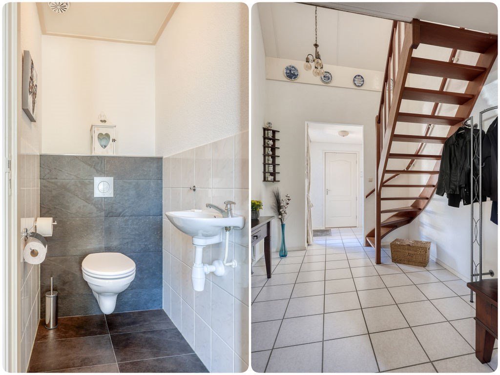 Entree en ruime hal met toegangsdeur naar aangebouwde garage, meterkast, toilet en trapopgang, zodra u de L-vormige woonkamer inloopt krijgt u een warm en huiselijk gevoel, de woonkamer is heerlijk licht met een sfeervolle gashaard en openslaande deuren die leiden naar de prachtige serre. De open keuken is ruim en heeft een landelijke stijl parallel keukenopstelling welke voorzien is van diverse inbouwapparatuur zoals; koel/vrieskast, oven, keramische kookplaat, afzuigkap en vaatwasser. Via de keuken is er toegang tot de bijkeuken met aansluiting voor wasmachine en droger, via de bijkeuken hebt u tevens toegang tot de serre en de ruime garage met elektrisch bedienbare sectionaaldeur, verwarming en spoelbak. De serre van ca. 3.50x6m. heeft glazen schuifdeuren, screens en inbouwspots, een heerlijke plek om in elke periode van het jaar te genieten van de prachtige tuin met een hapje en een drankje.