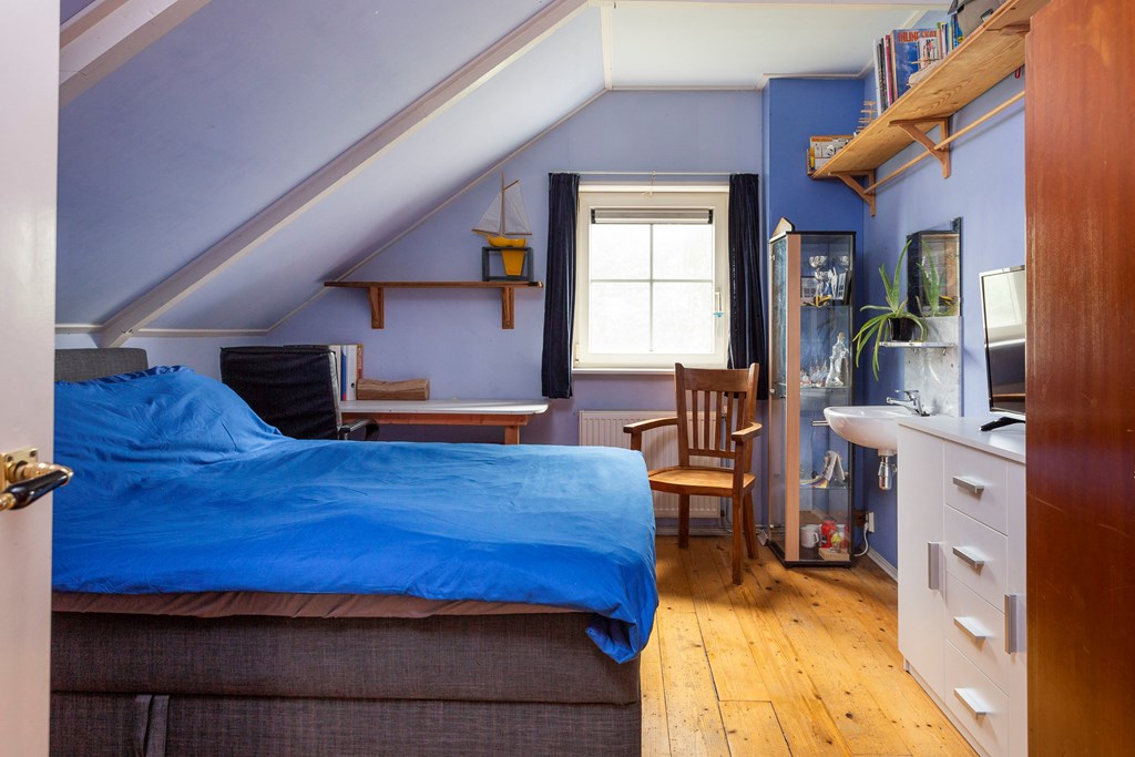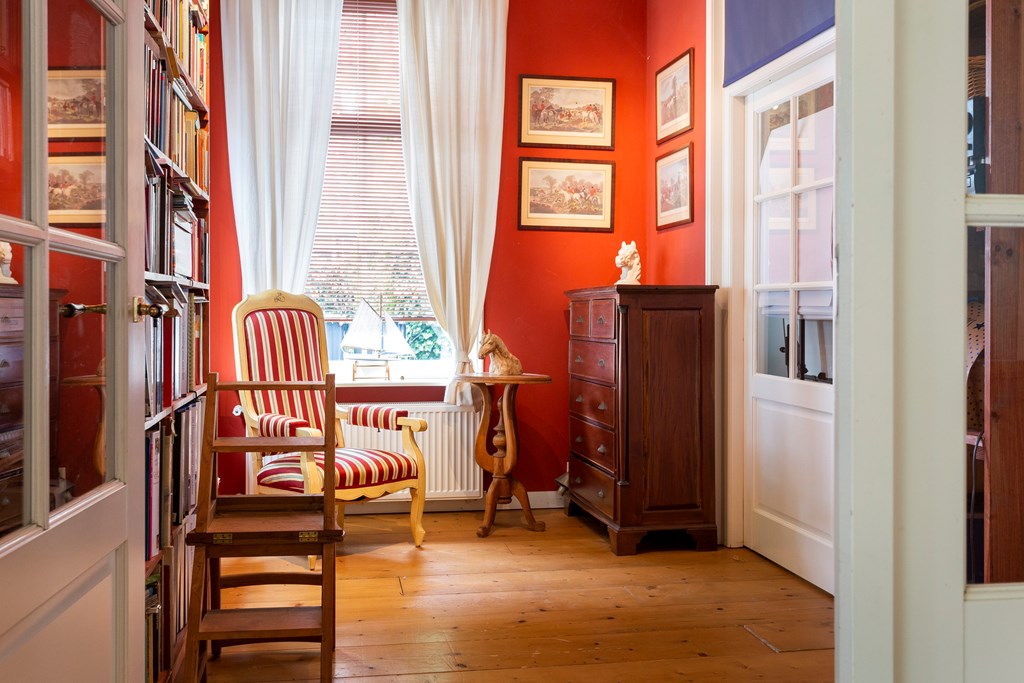 Nadat we onze auto op het ruime erf geparkeerd hebben, of wellicht komt u op de fiets, deze kunt u kwijt in de overdekte fietsenstalling, betreden we de woning aan de voorzijde. We komen in de hal met karakteristieke estriken vloer, u voelt gelijk de sfeer van landelijk wonen. De hal geeft rechts toegang tot een kantoor welke ook prima kan dienen als slaapkamer, door de dubbele openslaande deuren komt u in de werkkamer welke thans in gebruik is als bibliotheek. Terug in de hal waar ook de meterkast is, is nog de trapopgang naar de verdieping en toegang tot de kelder, aan het einde van de hal komen we in de woonkamer en woonkeuken. De woonkamer is gesitueerd aan de achterzijde en tuingericht, met dat prachtige landelijke uitzicht wat nooit verveelt, de openslaande deuren geven toegang tot de achtertuin. De woonkeuken met houtkachel voor de sfeerverwarming, bevindt zich aan de voorzijde, is heerlijk ruim en licht en heeft een landelijke stijl keukenopstelling met natuurstenen aanrechtblad en is voorzien van diverse inbouwapparatuur zoals; Bosch fornuis, afzuigkap in schouw, koelkast, combimagnetron en vaatwasser. Vanuit de woonkeuken is er uitzicht over de landerijen richting het Slotermeer. Via dubbele openslaande deuren is er vanuit de woonkamer en woonkeuken ook toegang tot de bibliotheek. Achter de bibliotheek is nog een bijkeuken, welke bereikbaar is via de woonkamer maar ook via de achterdeur, hier bevindt zich een vintage keukenblokje met granieten aanrechtblad, welke precies thuis past in de sfeer van het landelijk wonen, via de bijkeuken is ook het toilet met douche toegankelijk.