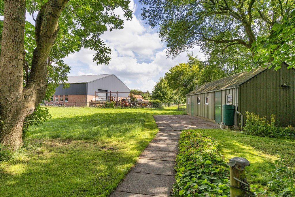 Wat is het toch genieten als je op het landelijke weggetje de Sânmar rijdt, de rust, de natuur om je heen en zodra je uit je auto stapt hoor je de vogeltjes fluiten. We betreden de woning via de voordeur en komen in de hal met trapopgang en links de woonkamer met diverse inbouwkasten en gashaard. Via de woonkamer is er toegang tot de keuken met eenvoudige rechte keukenopstelling, via een schuifdeur kom je in de slaapkamer. Via de keuken is ook de aanbouw toegankelijk met toilet, badkamer met wastafel en douche en bijkeuken, hier bevindt zich de cv-installatie. Via de bijkeuken stap je zo de achtertuin in met prieel en garage van ca. 7,65×3,35 m. en loop je even door naar achteren dan kom je bij een groot open veldje met grote schuur.